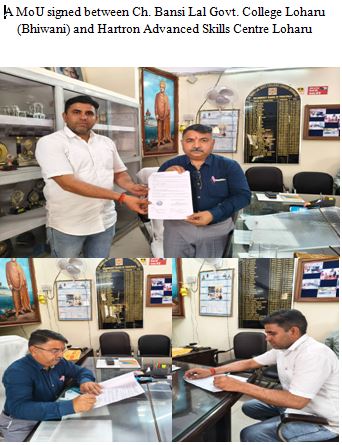 MoU signed between Ch. Bansi Lal Govt. College Loharu (Bhiwani) and Hartron Advanced Skills Centre Loharu